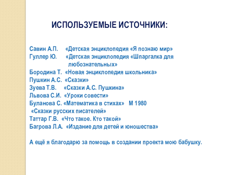 ИСПОЛЬЗУЕМЫЕ ИСТОЧНИКИ: