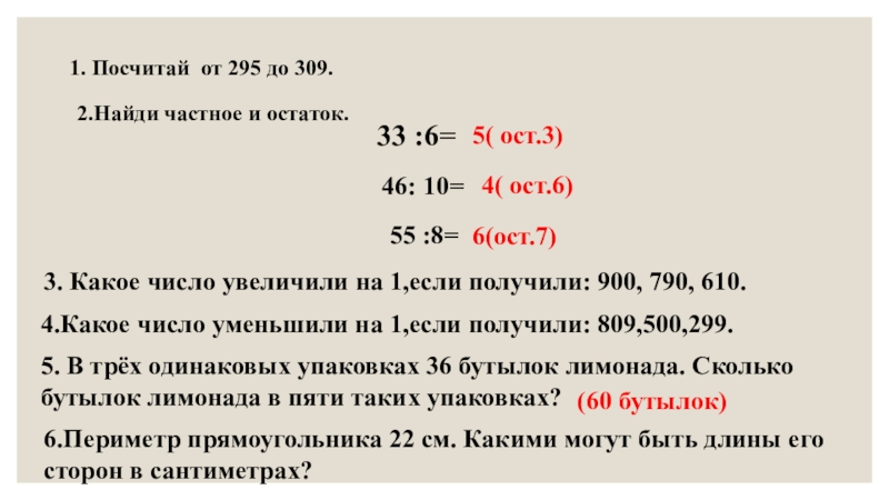 3. Какое число увеличили на 1,если получили: 900, 790, 610.