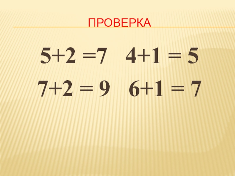 ПРОВЕРКА5+2 =7  4+1 = 5    7+2 = 9  6+1 = 7