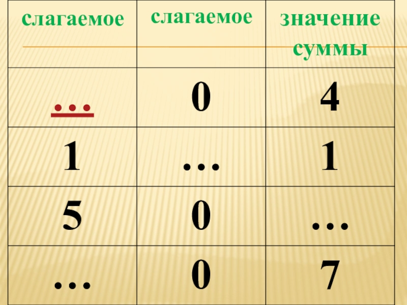 Учиться записывать суммы и их значения по таблице.