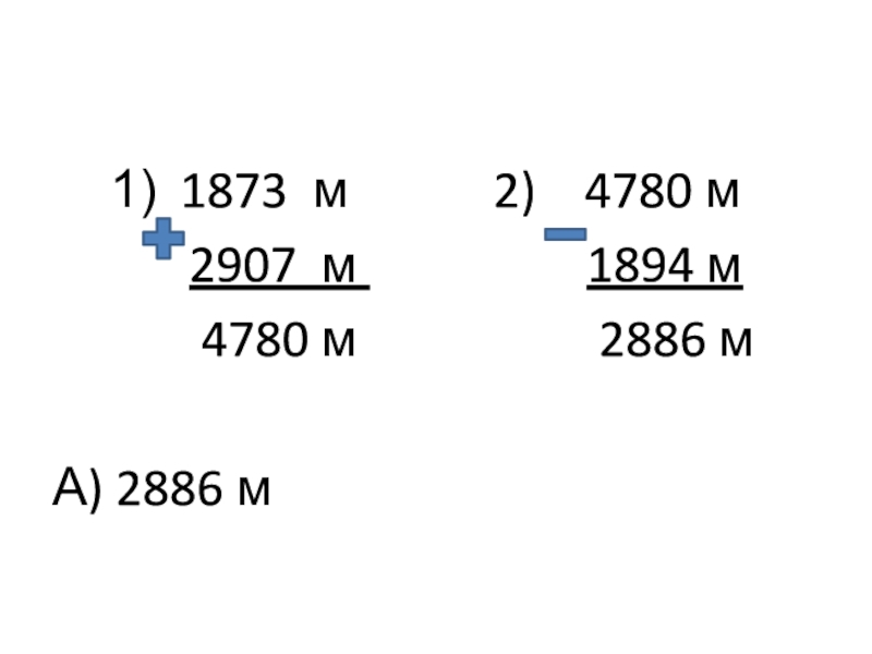 1873 м      2)  4780 м   2907 м