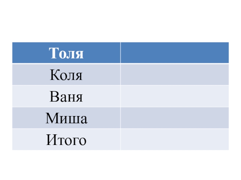 Слайд 4Четыре друга: Толя, Коля, Ваня и Миша решили участвовать в соревнованиях