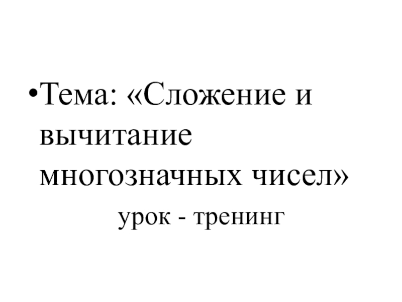 Тема: «Сложение и вычитание многозначных чисел»урок - тренинг