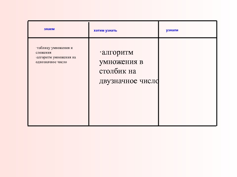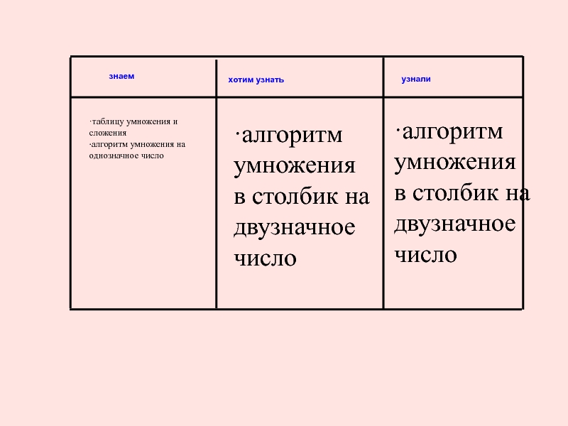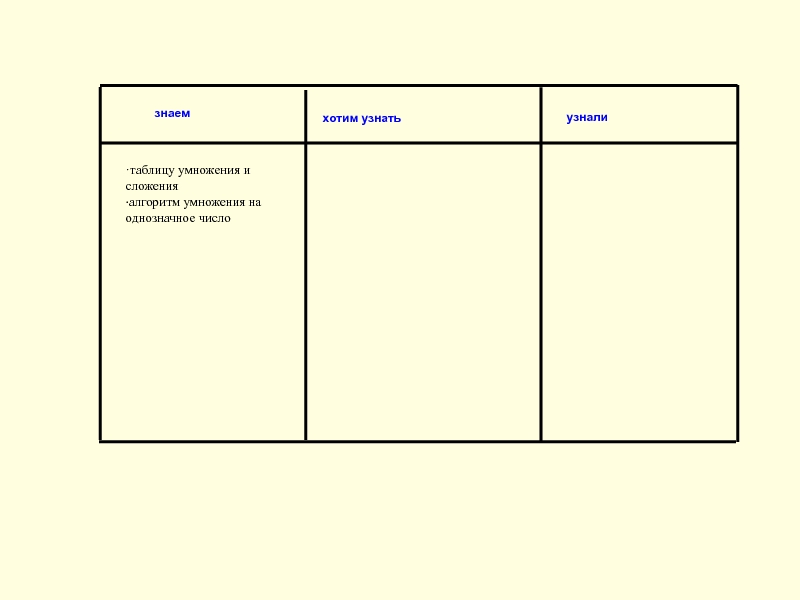 ·таблицу умножения и сложения ·алгоритм умножения на однозначное число