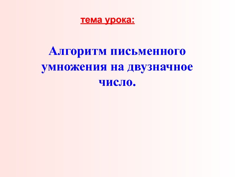 тема урока:Алгоритм письменного умножения на двузначное число.