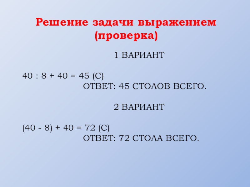 Решение задачи выражением (проверка)