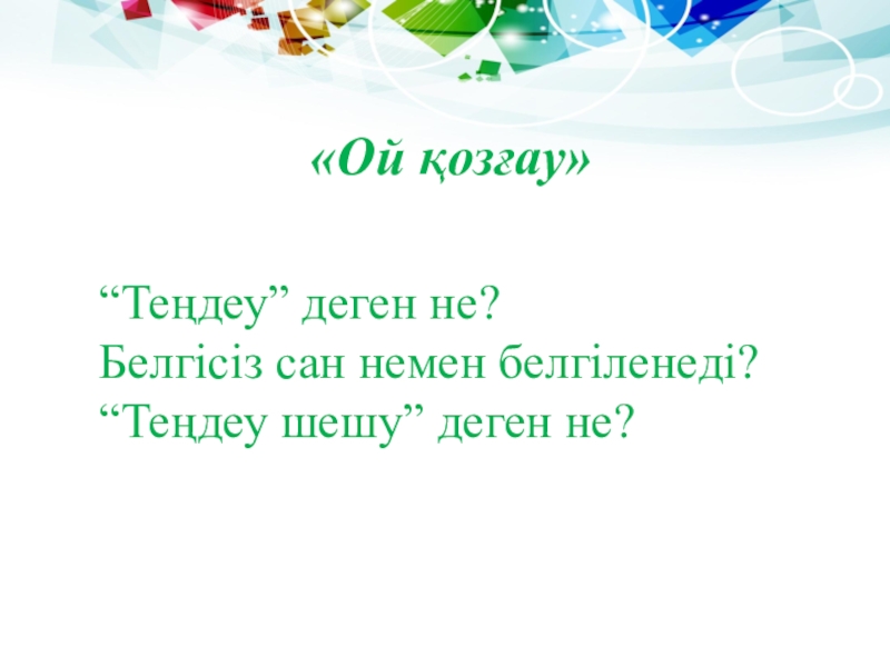 «Ой қозғау» “Теңдеу” деген не?  Белгісіз сан немен белгіленеді? “Теңдеу шешу” деген не?
