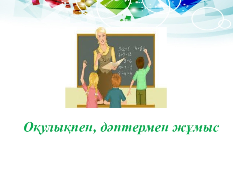 Слайд 11Оқулықпен, дәптермен жұмыс