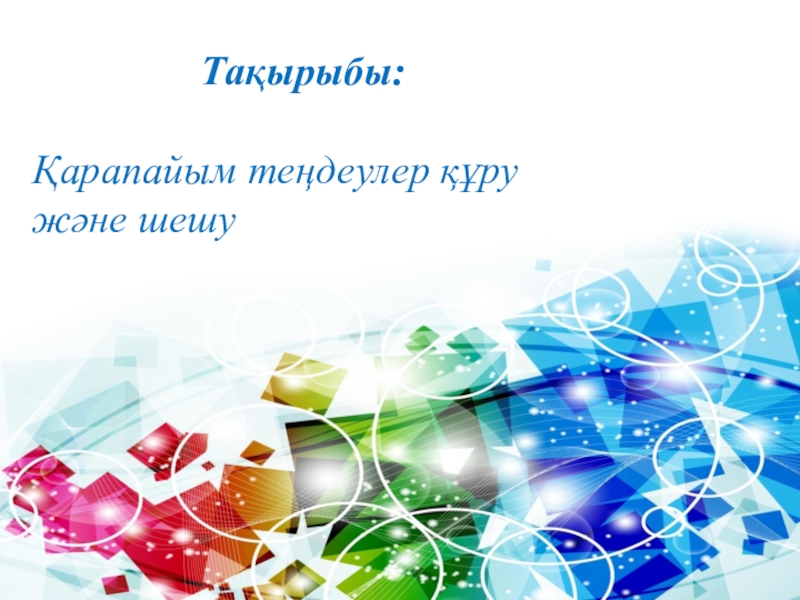 Тақырыбы: Қарапайым теңдеулер құру және шешу