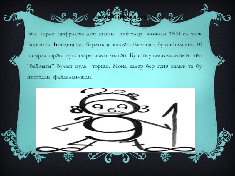 Без гарәп цифрлары дип атаган цифрлар моннан 1500 ел элек Борынгы Һиндстанда барлыкка килгән. Европага бу цифрларны 10 гасырда гарәп купецлары алып килгән. Бу санау системасының төп “байлыгы” булып нуль торган. Моңа кадәр бер генә халык та бу цифрдан файдаланмаган.