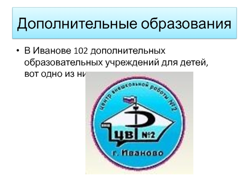 Дополнительные образования В Иванове 102 дополнительных образовательных учреждений для детей, вот одно из них.