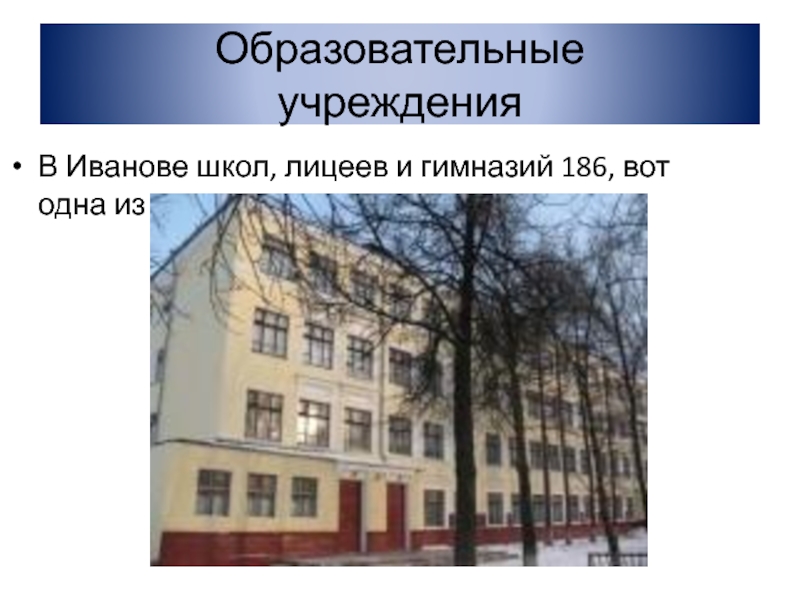 Образовательные учрежденияВ Иванове школ, лицеев и гимназий 186, вот одна из школ.