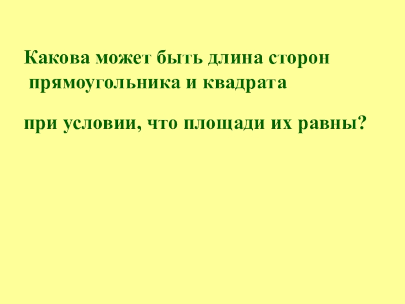 Какова может быть длина сторон прямоугольника и квадрата при условии, что площади их равны?