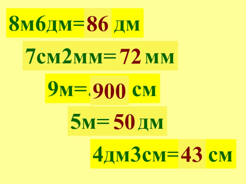 8м6дм=… дм7см2мм=… мм9м=…  см5м=… дм4дм3см=… см86729005043