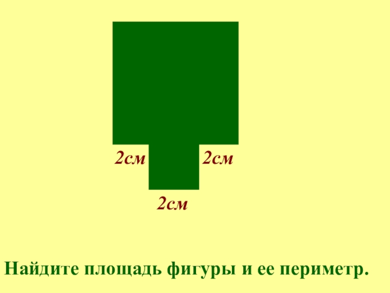 Найдите площадь фигуры и ее периметр.2см2см2см