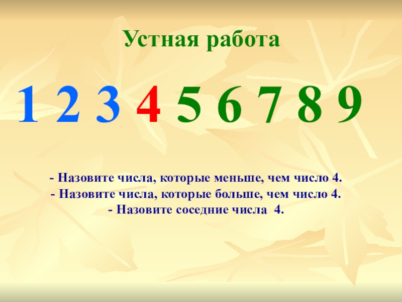 - Назовите числа, которые меньше, чем число 4.