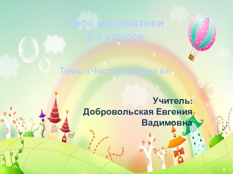 Урок математикив 1 классеТема: «Число и цифра 6».Учитель: Добровольская Евгения Вадимовна