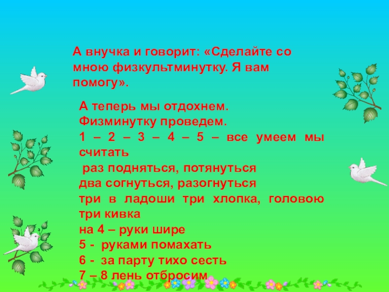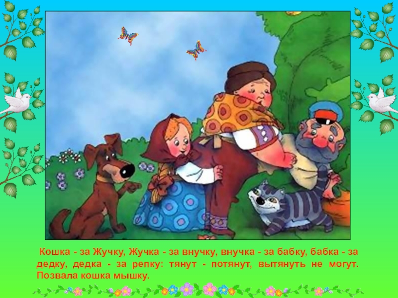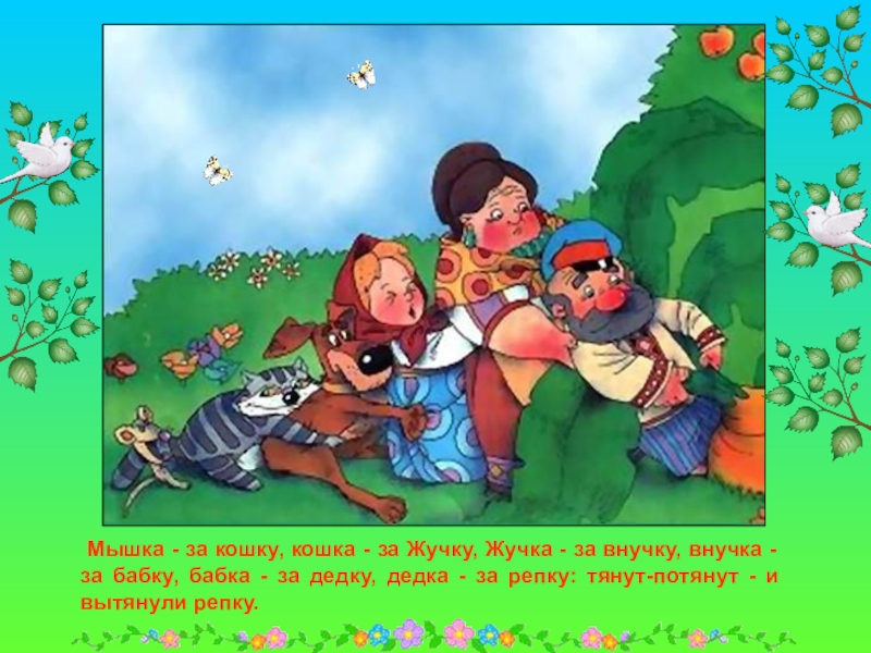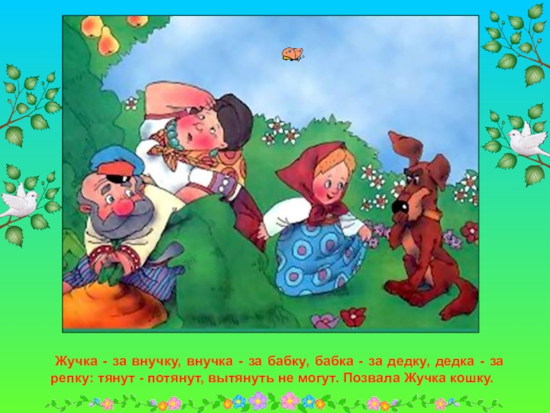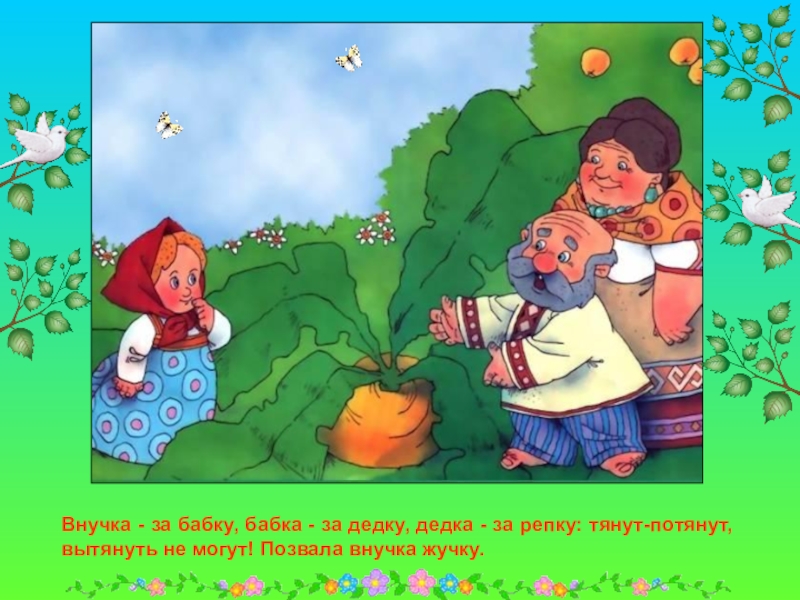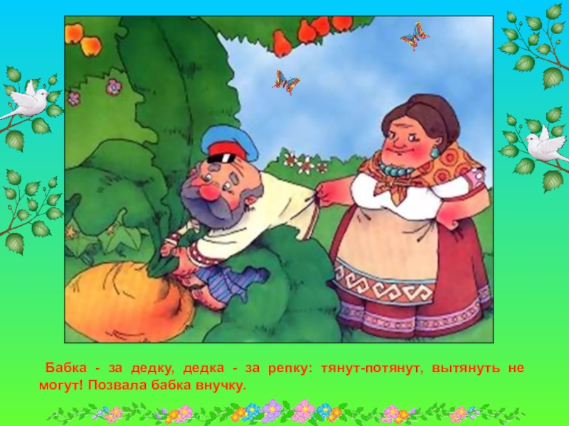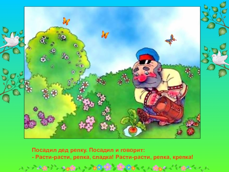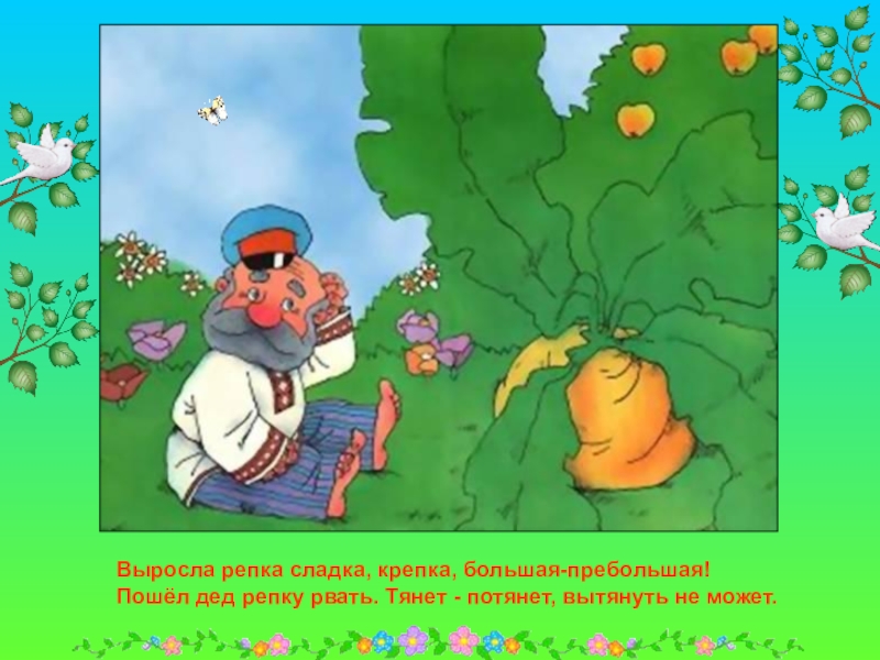 Сидит дед, ждет, когда репка вырастет. Скучно ему стало, и решил он посчитать устно.