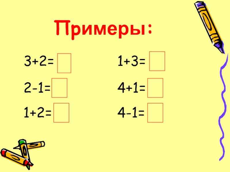 Примеры:1+2=3+2=4+1=1+3=4-1=2-1=11