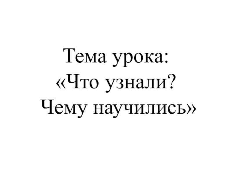 Слайд 1Тема урока: «Что узнали? Чему научились»