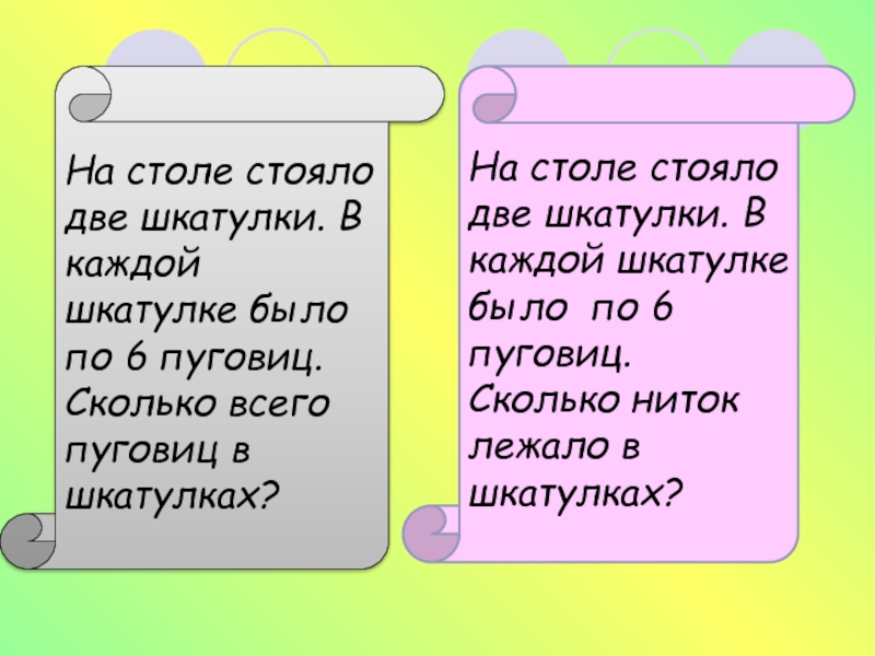 На столе стояло две шкатулки. В каждой шкатулке было по 6 пуговиц. Сколько всего пуговиц в шкатулках?