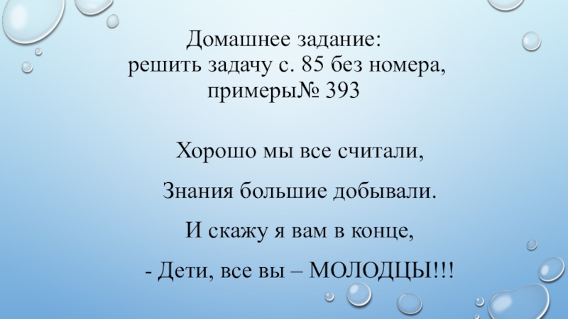 - совершенствовать навыки в решении составных задач, которые включают действия на привидение к единице;