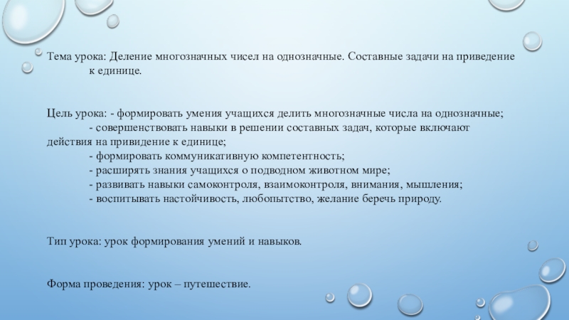 Тема урока: Деление многозначных чисел на однозначные. Составные задачи на приведение