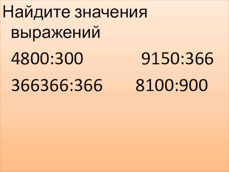 Найдите значения выражений 4800:300	      9150:366 366366:366	    8100:900