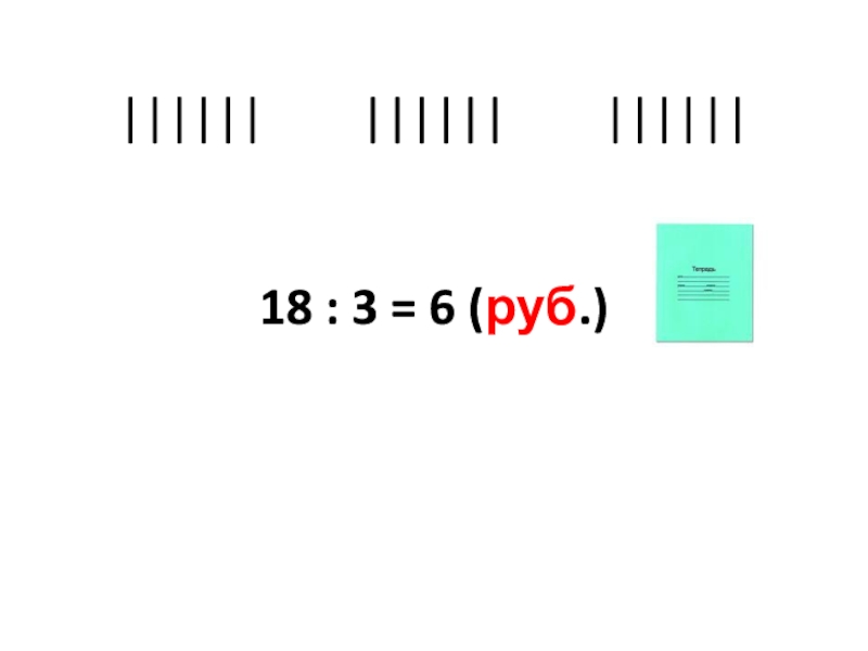 ||||||    ||||||    ||||||   18 : 3 = 6 (руб.)