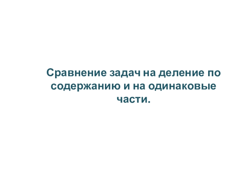 Слайд 1Сравнение задач на деление по содержанию и на одинаковые части.