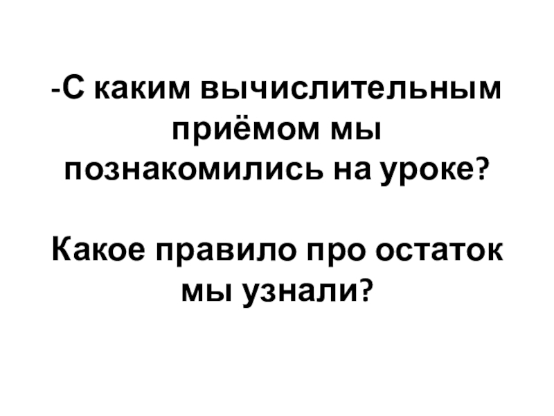-С каким вычислительным приёмом мы познакомились на уроке?  Какое правило про остаток мы узнали?
