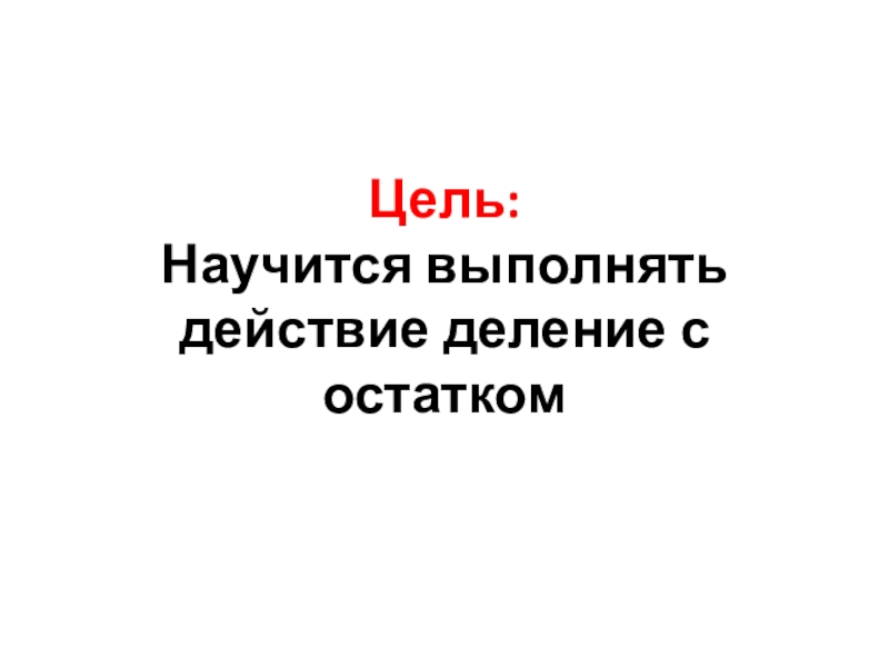 Слайд 5Цель: Научится выполнять действие деление с остатком