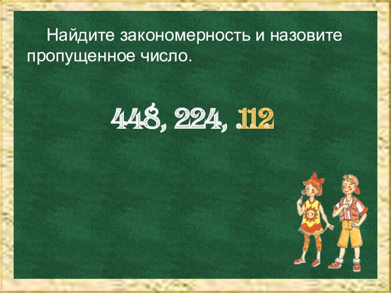 448, 224, . . . Найдите закономерность и назовите пропущенное число.112