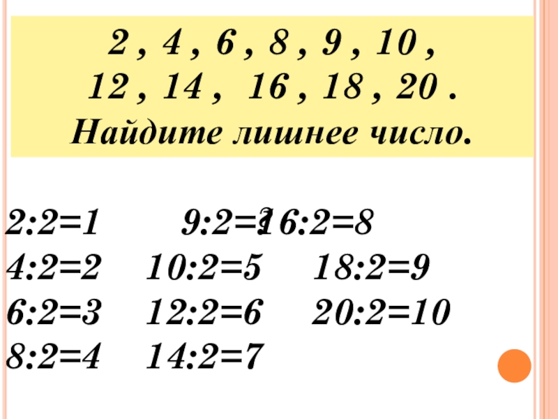 4:2=2 10:2=5 18:2=9