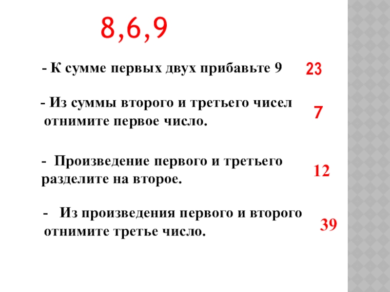 - К сумме первых двух прибавьте 9