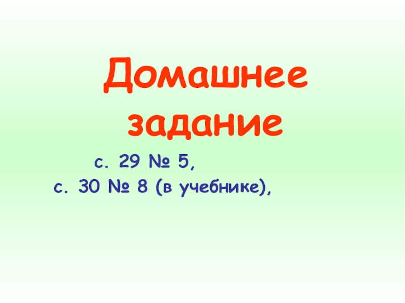 Домашнее задание		с. 29 № 5, с. 30 № 8 (в учебнике),