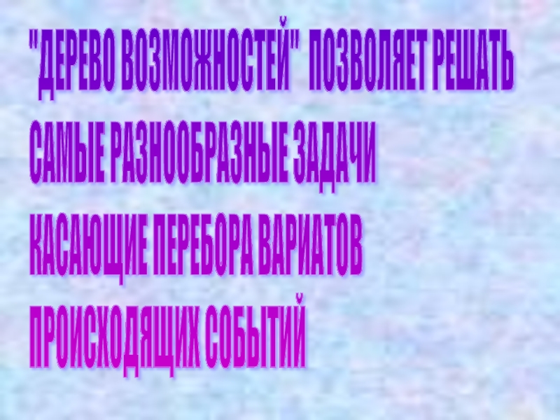 "ДЕРЕВО ВОЗМОЖНОСТЕЙ" ПОЗВОЛЯЕТ РЕШАТЬ