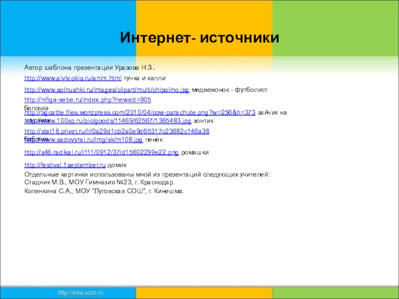Отдельные картинки использованы мной из презентаций следующих учителей: