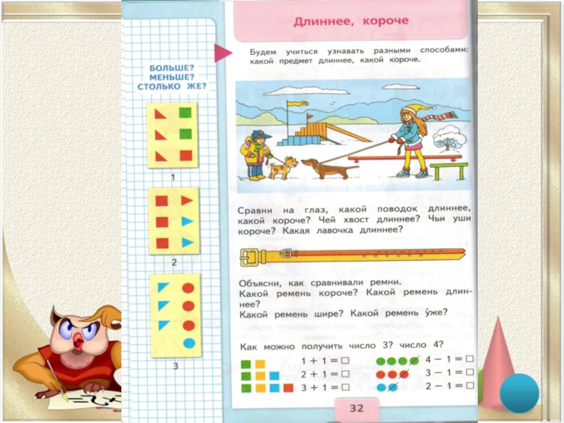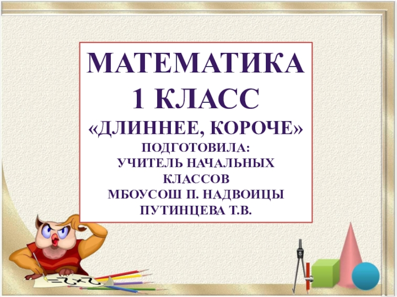 МАТЕМАТИКА 1 КЛАСС«ДЛИННЕЕ, КОРОЧЕ»ПОДГОТОВИЛА:УЧИТЕЛЬ НАЧАЛЬНЫХ КЛАССОВМБОУСОШ П. НАДВОИЦЫПУТИНЦЕВА Т.В.