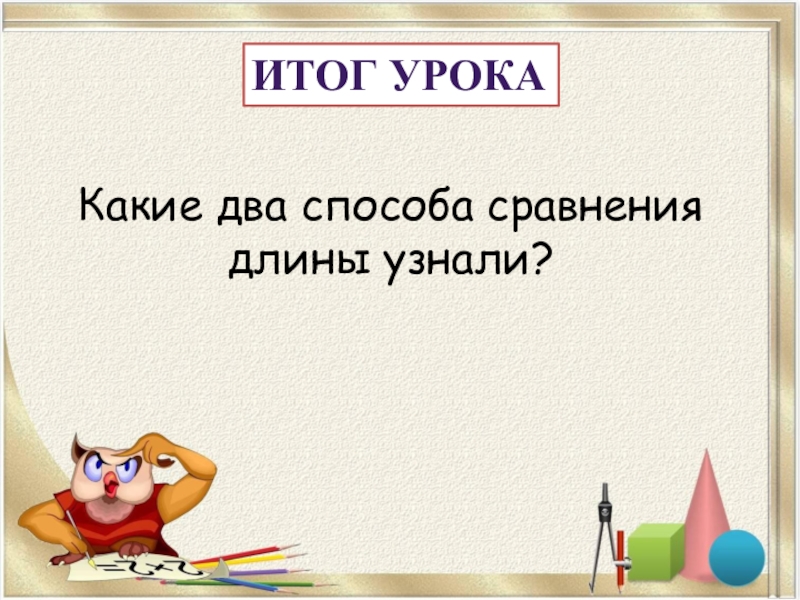 ИТОГ УРОКАКакие два способа сравнения длины узнали?