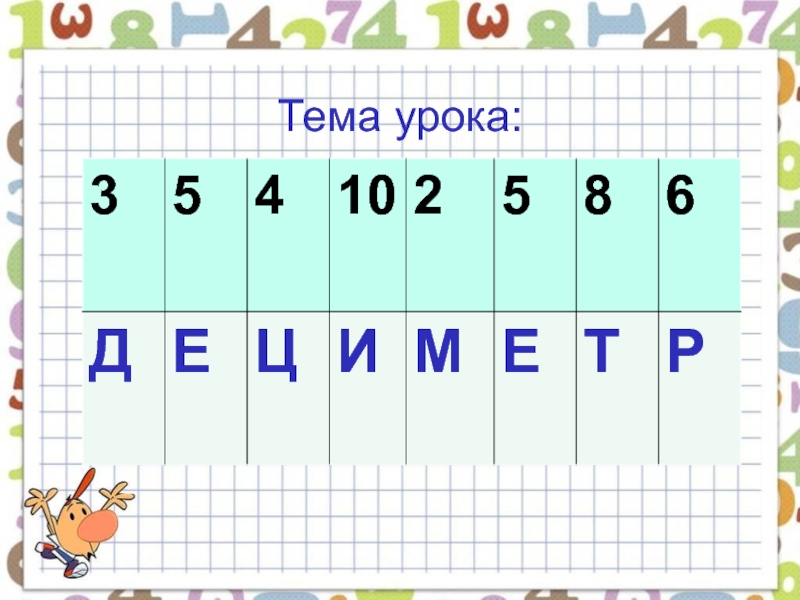 Презентация, доклад по математике на тему Единица длины-дециметр (1 класс)