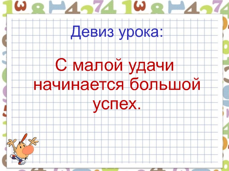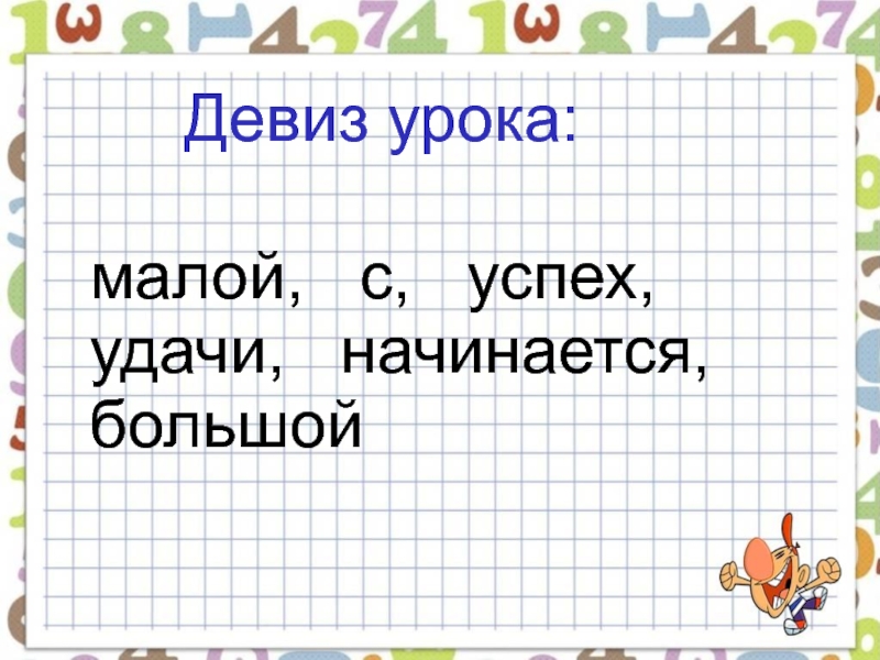 Девиз урока:малой,  с,  успех,     удачи,  начинается, большой
