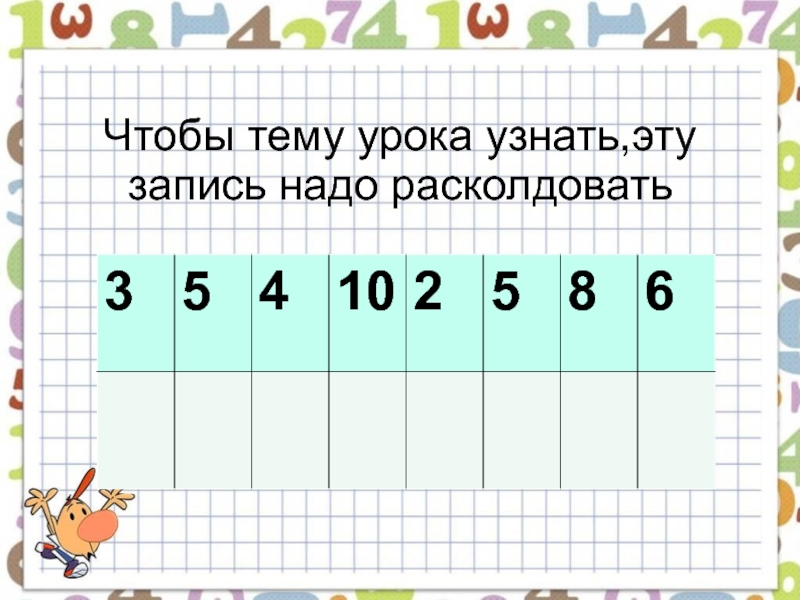 Слайд 12Чтобы тему урока узнать,эту запись надо расколдовать