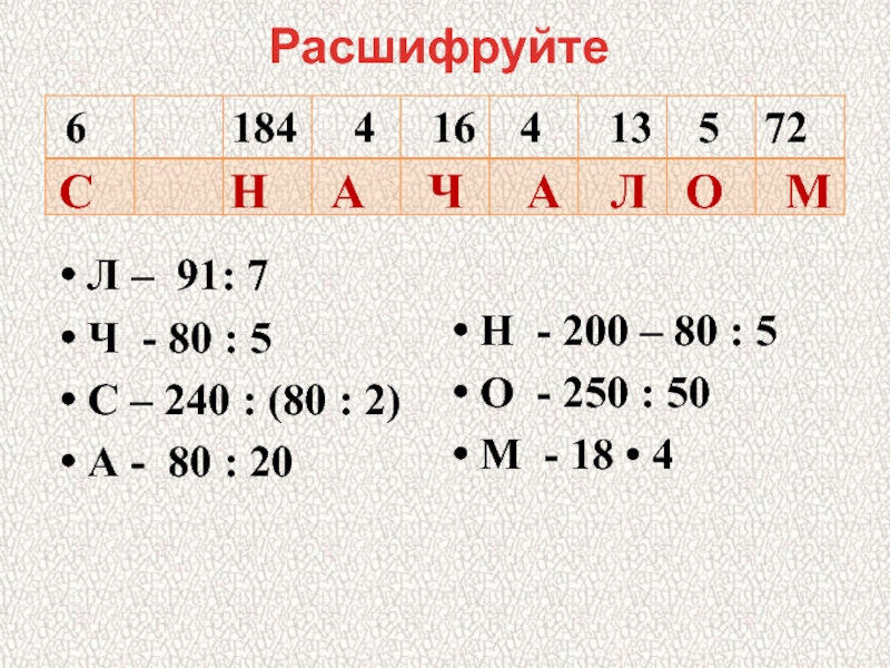 С Н А Ч А Л О М