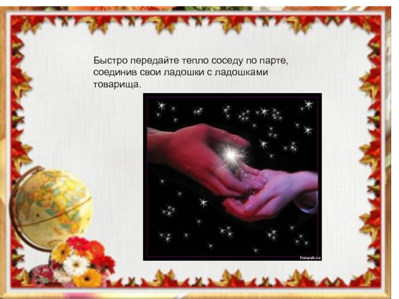 Быстро передайте тепло соседу по парте, соединив свои ладошки с ладошками товарища.