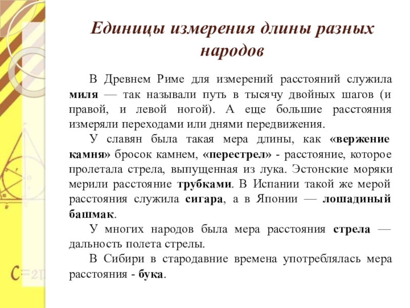 Презентация, доклад по математике на тему Единицы измерения длины разных народов