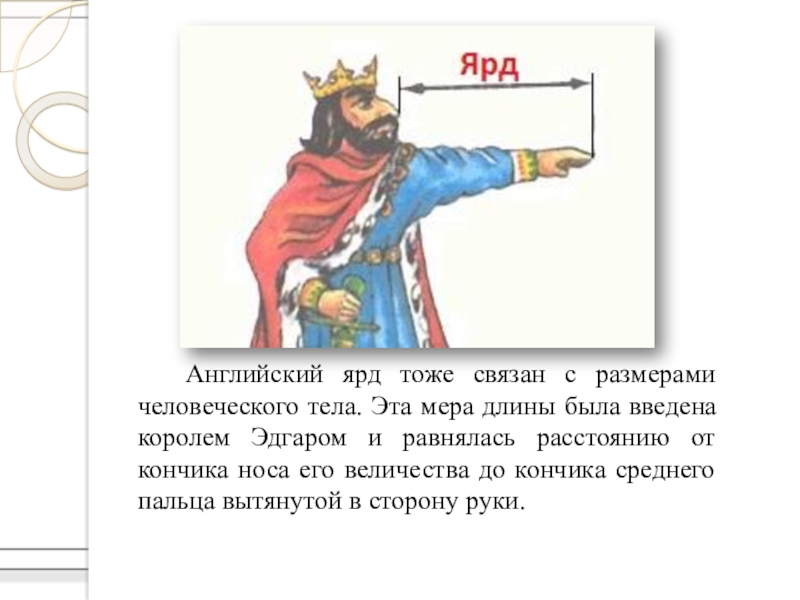 Слайд 9 Английский ярд тоже связан с размерами человеческого тела. Эта мера длины