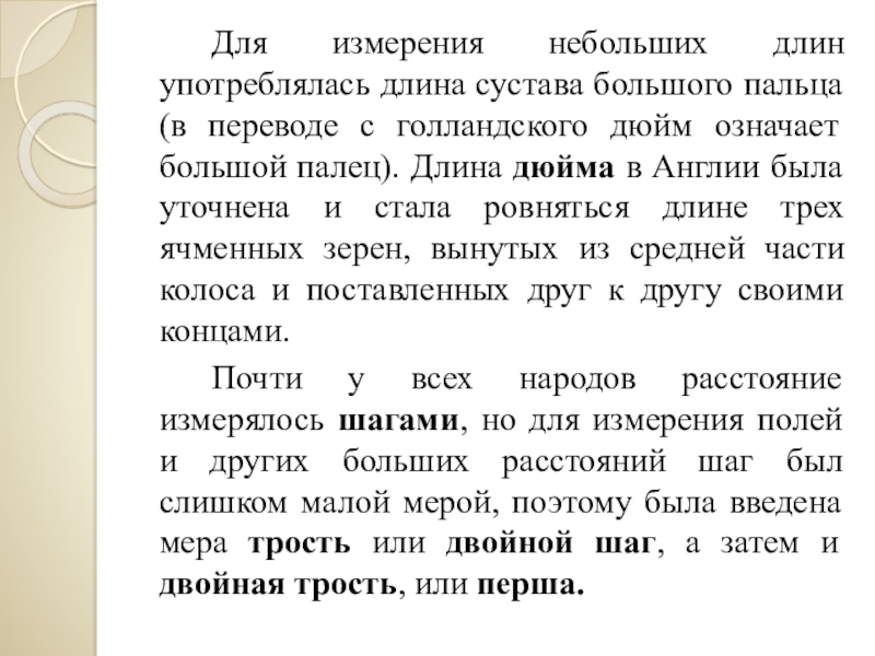 Слайд 10 Для измерения небольших длин употреблялась длина сустава большого пальца (в переводе