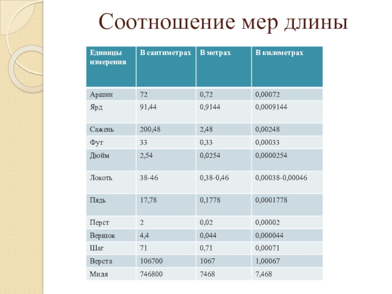 Соотношение мер длины