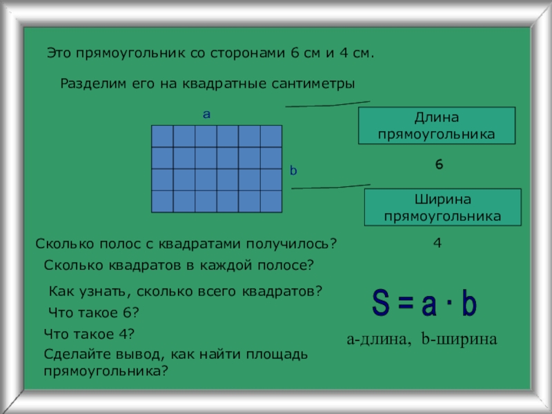 Сделайте вывод, как найти площадь прямоугольника?